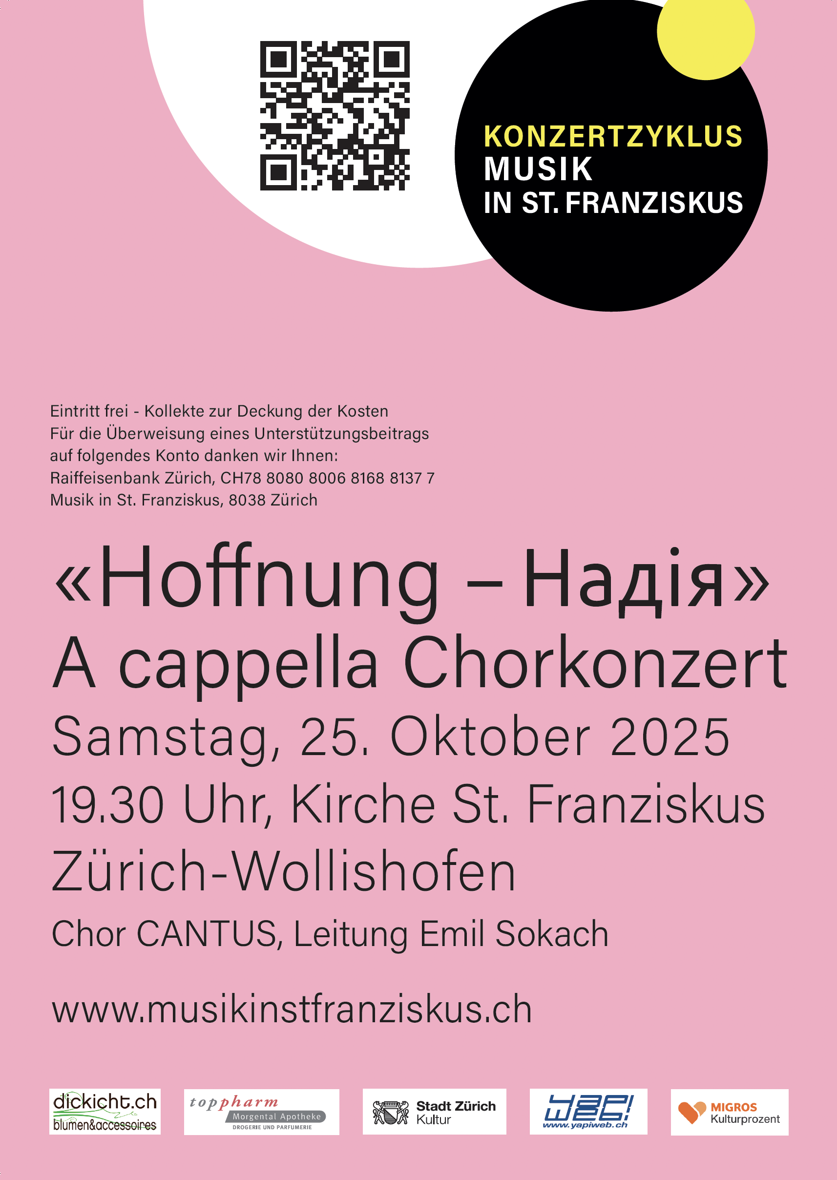 19.30 Uhr, Kirche St. FranziskusZürich-Wollishofen
